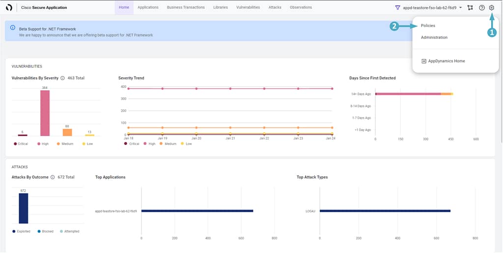 2. Type in {cluster-prefix}-teastore-fso-lab-{your-lab-number} in the ‘Application’ box and select your TeaStore Application from the drop-down