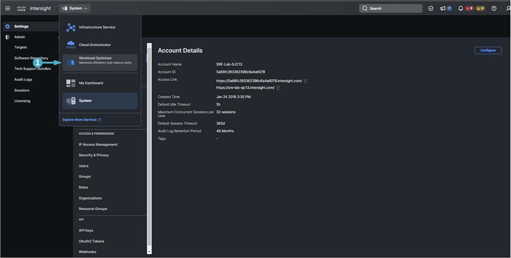 1. Select “Workload Optimizer” from the pull-down menu.