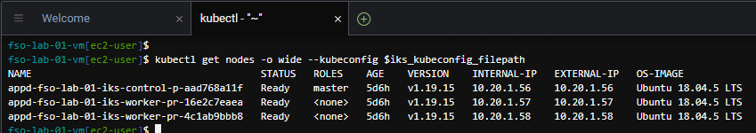 kubectl get nodes -o wide –kubeconfig $iks_kubeconfig_filepath