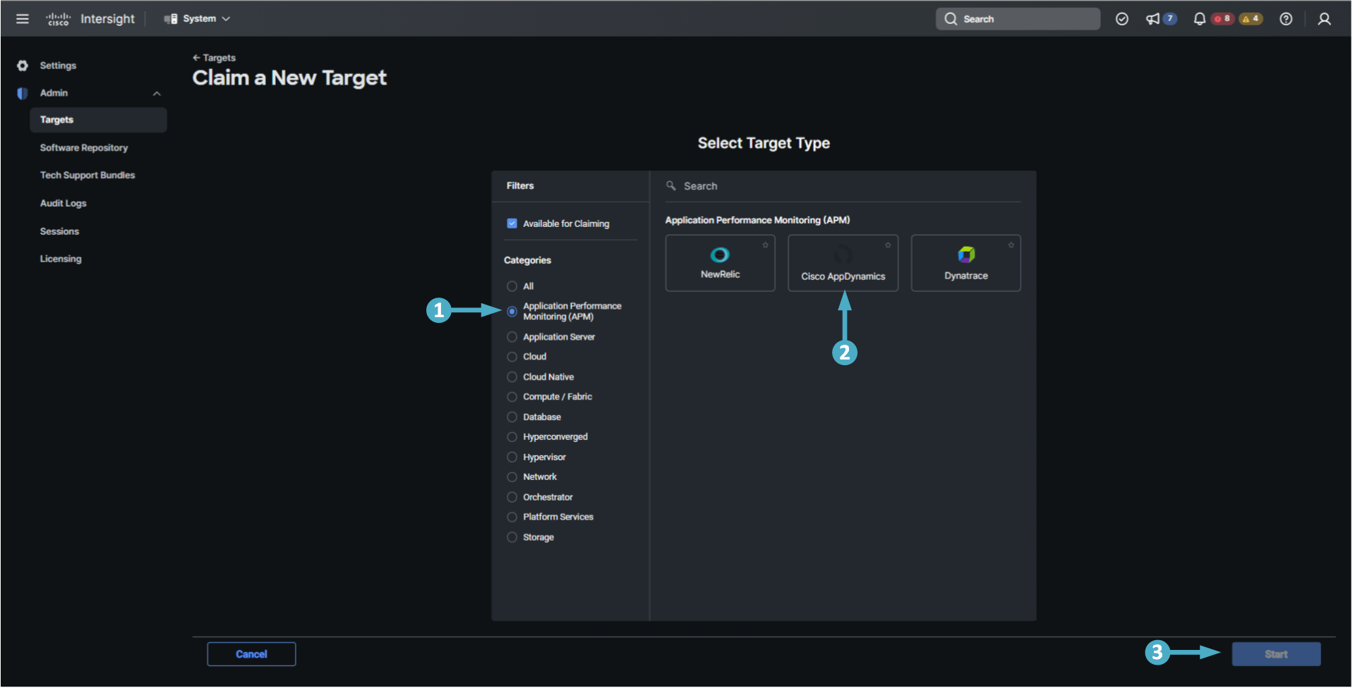 🔵 Next use the steps below to claim a new AppDynamics target.