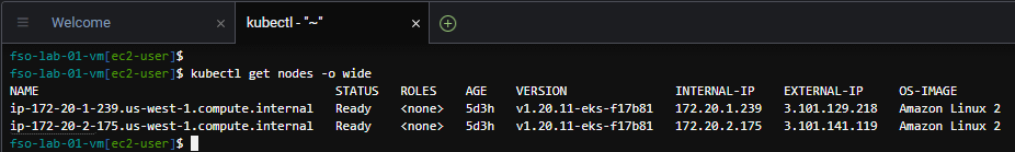 🔵 Use the command below to view the worker nodes in the EKS Kubernetes cluster.