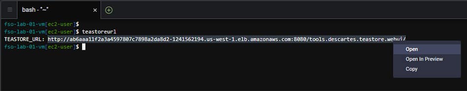 🔵 Use the command below to obtain the URL to the TeaStore UI.