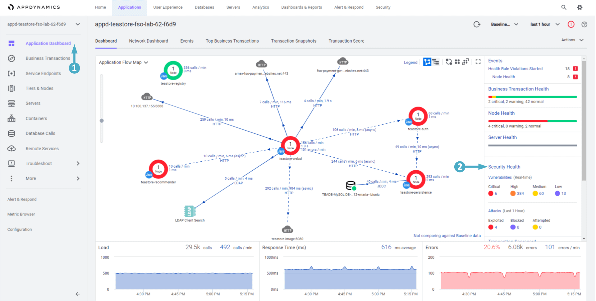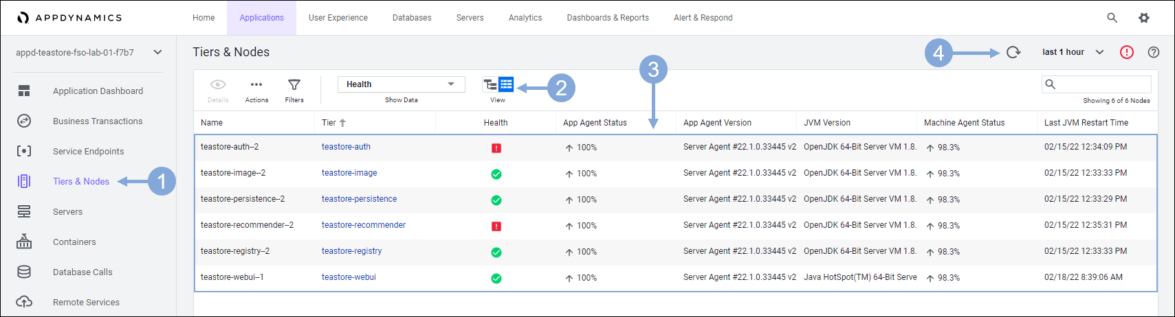 🔵 Use the steps in the previous exercise to navigate to the TeaStore application with your lab number in the name in the AppDynamics controller.