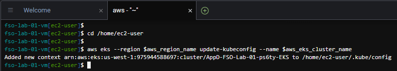 aws eks –region $aws_region_name update-kubeconfig –name $aws_eks_cluster_name