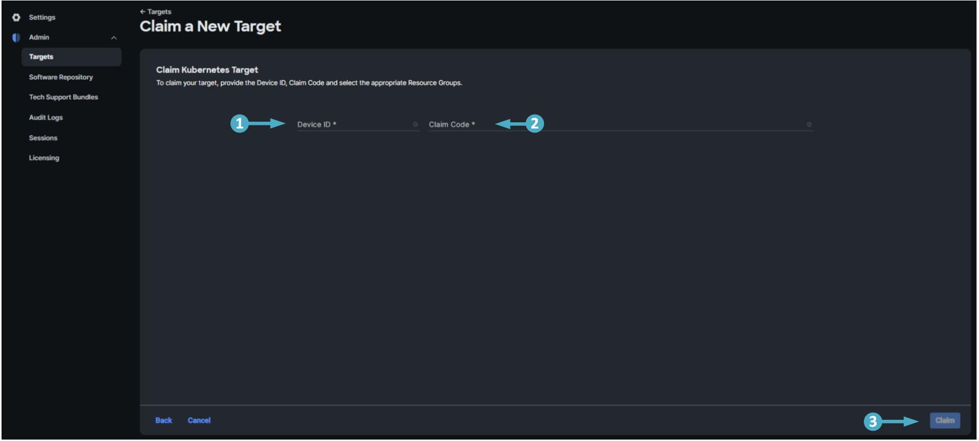 🔵 Next use the steps below to claim a new target for your IKS Kubernetes cluster.