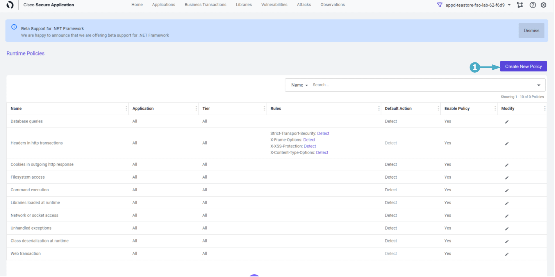 🔵 Create a new Policy in Secure Application by using the steps below.