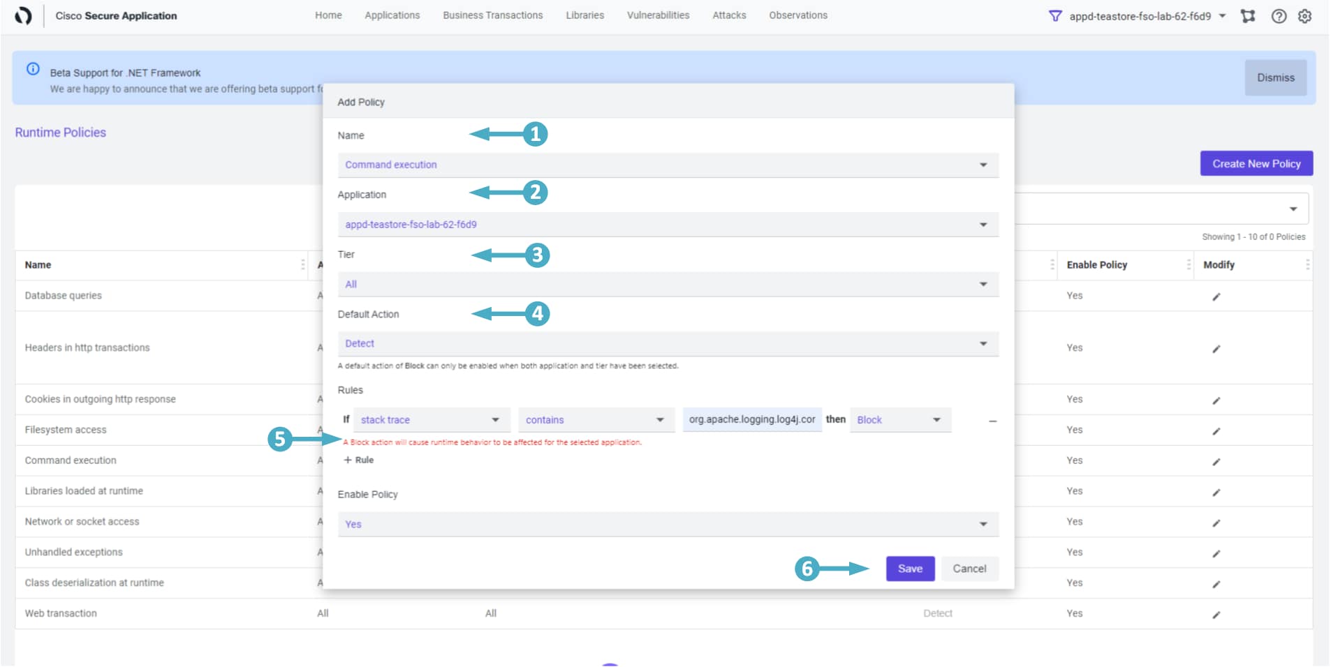 🔵 Click on the Save button to confirm you want to create the Block policy.