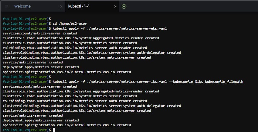 🔵 Use the commands below to deploy the metric server to both the IKS and EKS cluster.