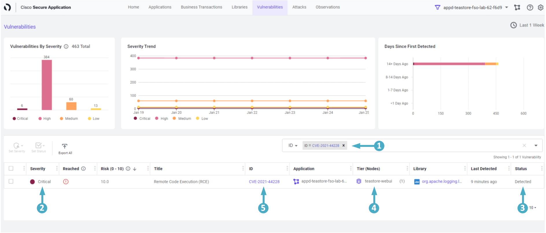 4. Notice the application that is vulnerable (in our case it is only our TeaStore app as we have restricted the scope)