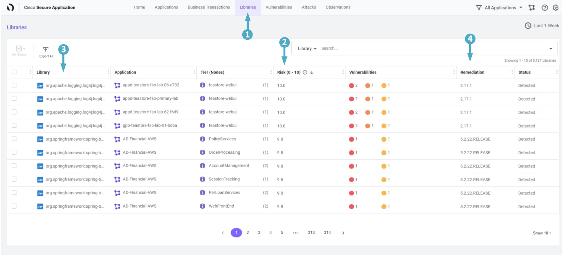 3. Here we see the Type of the Application (Java in this case) and which Tier or Service is using a particular Library.