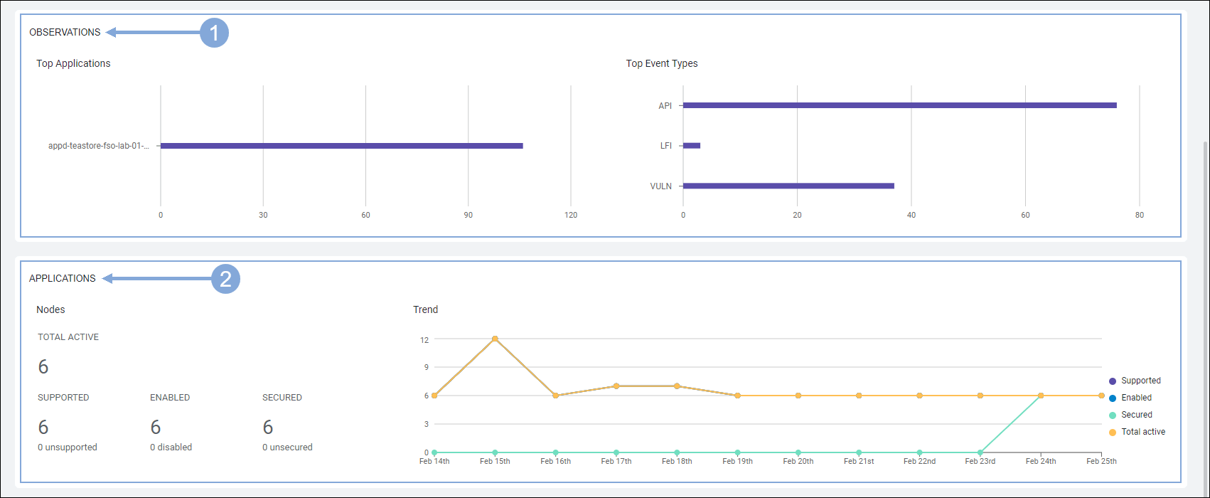1. TheĀ ObservationsĀ pane shows top 10 Applications and Event Types that are observed with malicious activities