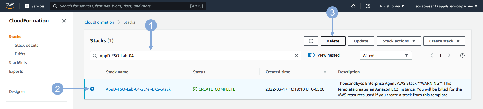 šŸ”µ Use the steps below to find your CloudFormation stack and delete it.