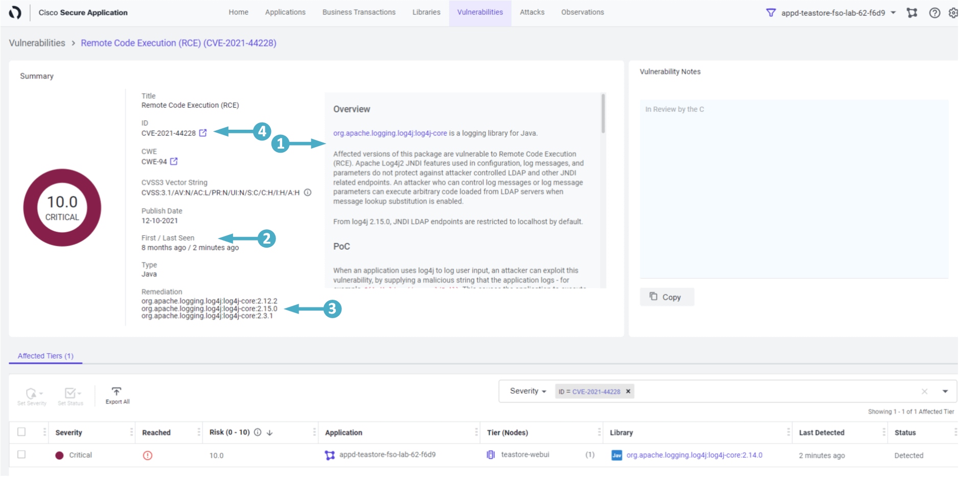 4. Tier (Nodes)Ā column tells us the affected services or Tiers in the application that are vulnerable